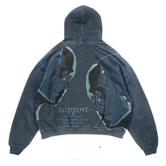 American New Street Goth Men Fashion Hooded Letter Print Pattern Shirt Harajuku Retro Y2K Couple Hooded Top